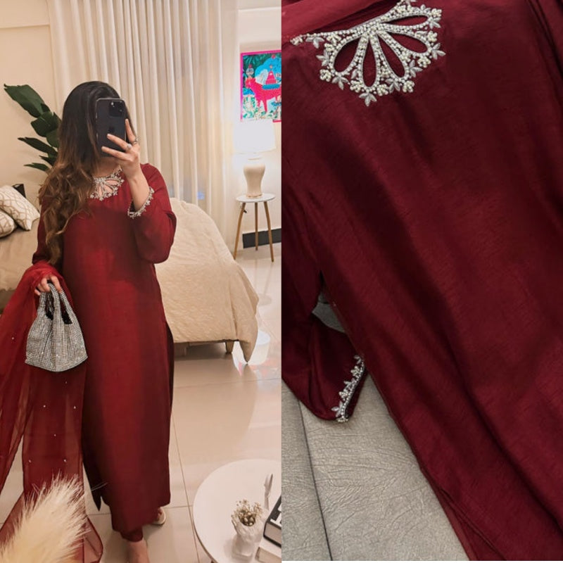 Dry clean recommended . Iron the clothes at moderate temperatures . Do not use any type of bleach or stain removing chemicals . Actual color may slightly vary from the image shown